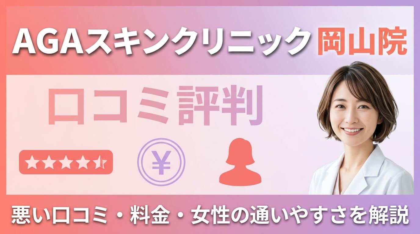 この記事では、岡山で「女性が誰にもバレずに通いやすい」「初月5,200円で安い」と評判「AGAスキンクリニック岡山院」のリアルな口コミと実態を、FAGA治療経験者の私が徹底的に検証します。