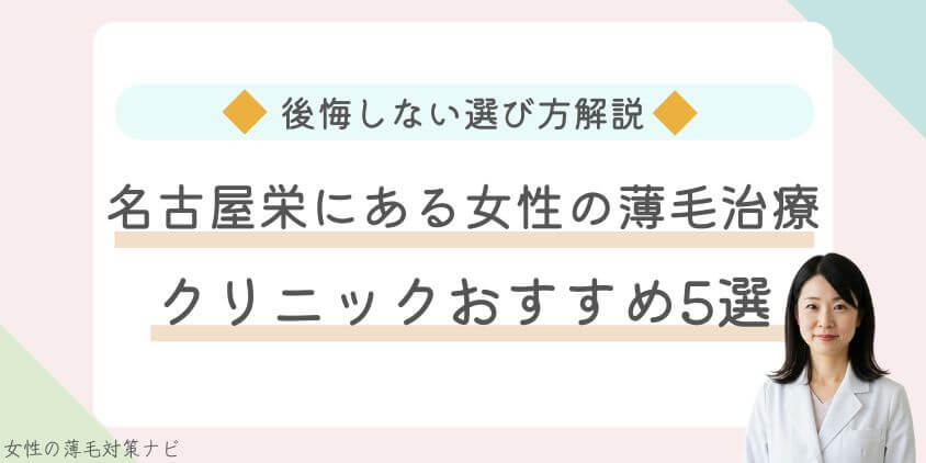 名古屋栄の女性向けFAGA薄毛治療クリニックを厳選!料金・評判・通いやすさで選ぶ失敗しない選び方も紹介。 -