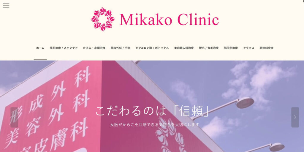- みかこクリニック: 形成外科・美容外科・美容皮膚科を標榜するクリニックで、女性院長(形成外科専門医)によるきめ細やかな診療体制が整っています。