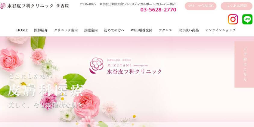- 水谷皮フ科クリニック 住吉院: 東京メトロ半蔵門線 / 住吉駅 徒歩8分、駐車場も完備しており、車での通院も安心です。