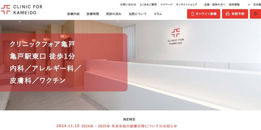 - クリニックフォア亀戸: 亀戸駅 東口 徒歩1分とアクセスしやすい立地です。