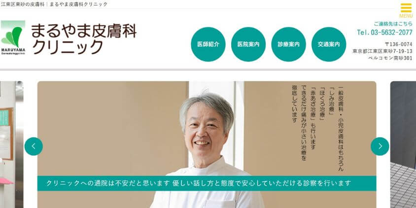 - まるやま皮膚科クリニック:東京メトロ東西線「南砂町駅」5番出口より徒歩13分、バスでも通院可能。