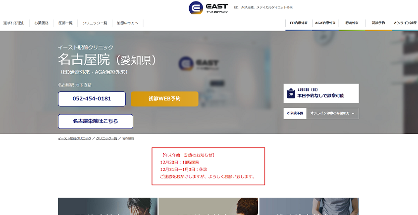 以下はJR名古屋駅、名古屋市営地下鉄栄駅・金山駅周辺にある女性の薄毛治療クリニックです。