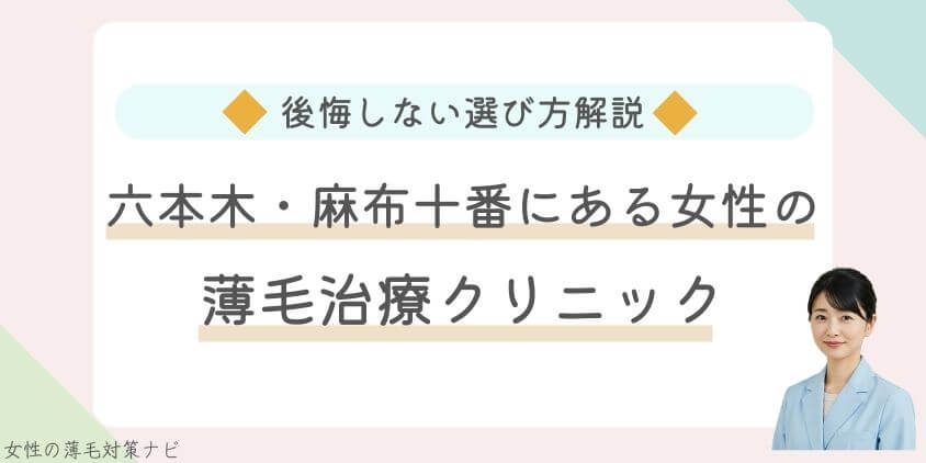 この記事では、六本木・麻布十番エリアで女性の薄毛(FAGA)治療に対応しているクリニックをご紹介します。