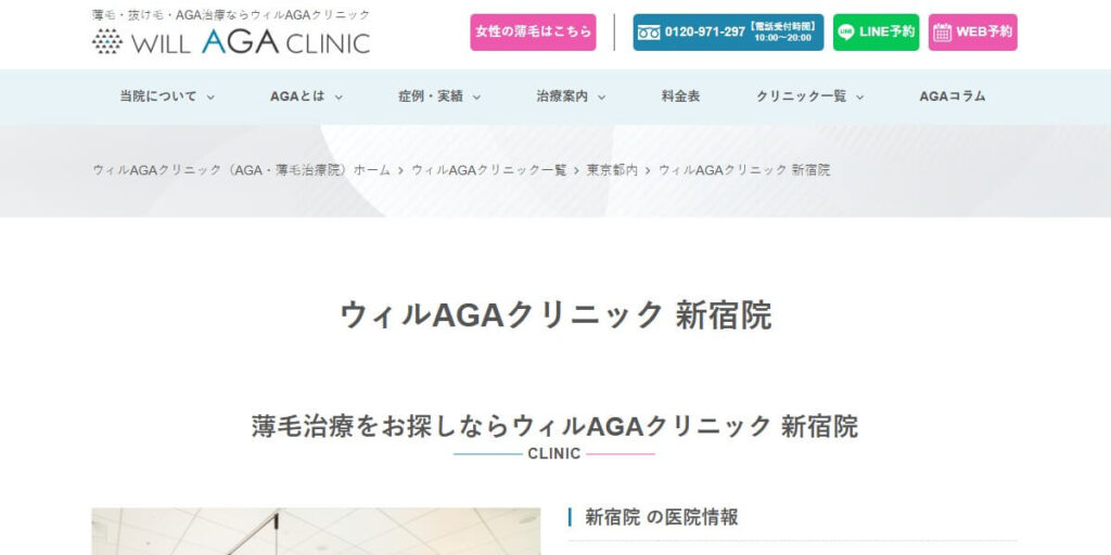 下記は新宿駅周辺にある女性の薄毛治療クリニックです。