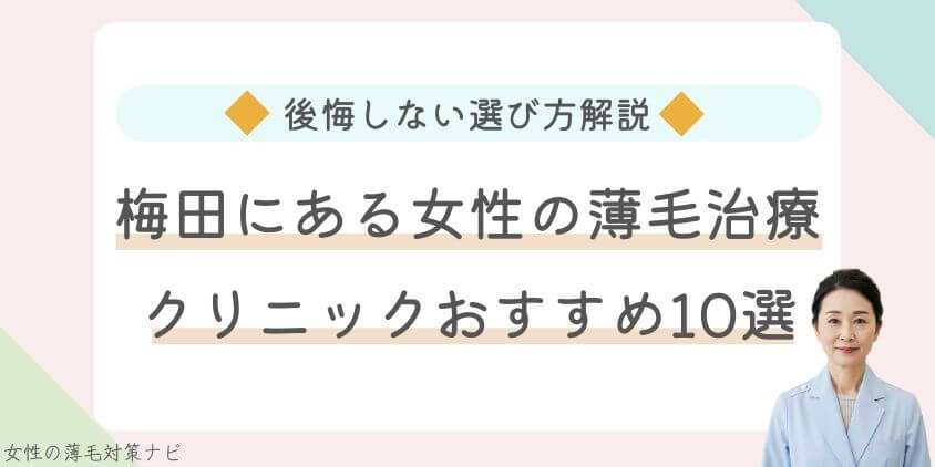 当記事では大阪メトロ御堂筋線梅田駅周辺で、女性の薄毛治療に対応したクリニックを掲載しておりますので、ぜひ参考にしてください。